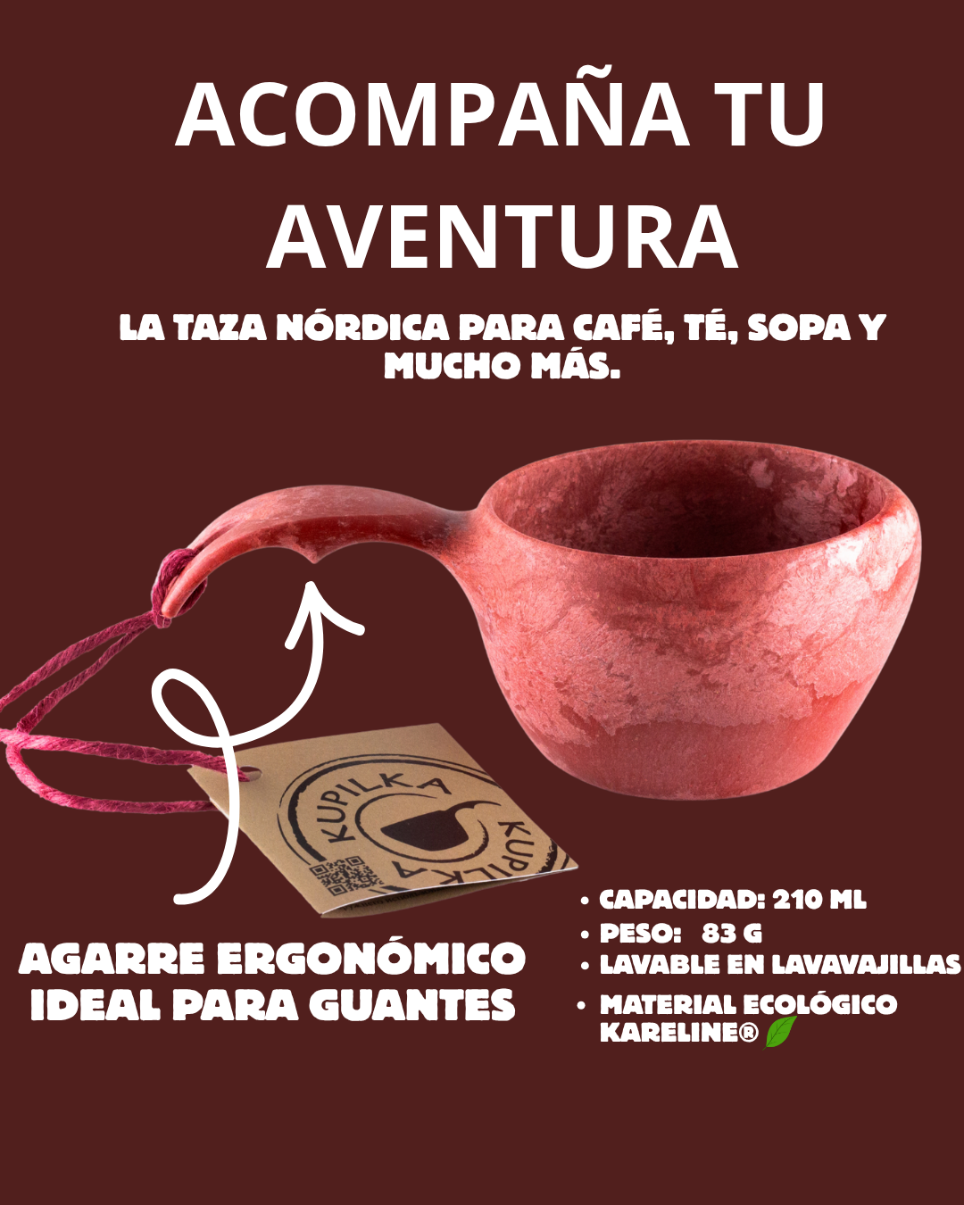 Inspirada en la tradicional Kuksa de la cultura sami, esta taza de diseño escandinavo une funcionalidad, historia y estilo. Ideal para tu café o té de la mañana, tanto en casa como en tus aventuras al aire libre. Su tamaño compacto y ergonómico permite un agarre seguro, incluso usando mitones de nieve en invierno, sin necesidad de quitártelos.